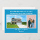 Minimalist, elegant, trendy moving announcement card with two custom photos, the names of family members, and the text "We've Moved! Come visit us soon!" + the new address and landline phone number on the front for you to personalise. Modern, chic turquoise blue background with white writing.