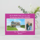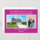 Minimalist, elegant, trendy moving announcement card with two custom photos, the names of family members, and the text "We've Moved! Come visit us soon!" + the new address and landline phone number on the front for you to personalise. Modern, chic plum pink background with white writing.