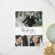 This minimalist 3 photo collage thank you card is perfect for a simple wedding. The modern romantic design features classic black and white typography paired with a rustic yet elegant calligraphy with vintage hand lettered style. Customisable in any colour. Keep the design simple and elegant, as is, or personalise it by adding your own graphics and artwork. Personalise the back of the card with your names, and a thank you message. Alternatively, leave the thank you message template section blank to hand write a personalised note on each card after they arrive. These cards can be used for a wedding, bridal shower, or any special event.