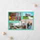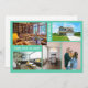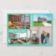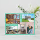Minimalist, elegant, trendy moving announcement card with 5 custom photos and the texts "We've Moved!" & "Come visit us soon!" on the front + the new address, "Please call first," phone numbers, and names on the back for you to personalise. Modern, chic aquamarine teal background with white writing on the front.