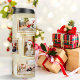 The highlight of this tumbler is the customisable 4+ photo template, showcasing seven meticulously arranged picture frames that await your most treasured memories. Complementing the frames is a column of white and beige Christmas decorations on one side, adding a touch of seasonal charm to this classic design.