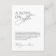 Minimalist "A Note On Gifts" Wedding Wishing Well Enclosure Card