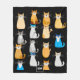 Cosy up in style with this whimsical cat collage blanket! Featuring a playful grid of colourful, minimalist cat illustrations, this design is perfect for cat lovers who appreciate modern art and bold patterns. The cats, depicted in a mix of vibrant blues, warm oranges, and neutral greys, pop against the sleek black background, making this blanket a charming statement piece. It’s ideal for snuggling on the couch, adding flair to your bedroom decor, or gifting to feline enthusiasts. The art design employs a flat, geometric illustration style, emphasising clean lines and contrasting shapes. Each cat is uniquely designed with simple, expressive details that showcase various breeds and personalities. The black background enhances the vibrant colour palette, while the minimalist “MW” logo adds a sophisticated, branded touch to the overall composition. Replace the initials in the monogram with your desired initials..
