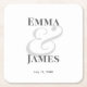 Sleek, modern wedding paper coaster featuring the signature ampersand sign with the bride and groom's first names and minimalist typography. Ideal for receptions, cocktail hours, or engagement celebrations.