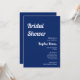The juxtaposition of script and block text creates a balanced and refined composition, drawing attention to the essential details. The deep sapphire backdrop adds a touch of mystique and opulence to the invitation, setting the tone for a bridal shower that is both chic and intimate. Against this rich, velvety canvas, the white text stands out, creating a captivating contrast that is visually striking.