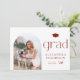 Announce your graduation to family and friends with this customisable photo graduation announcement card. It features red minimalist typography and arch photo frame Personalise this boho graduation announcement by adding a photo, name, school and other details. This modern photo graduation announcement is available in other cardstock.