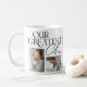 This charming Christmas Mug design features a minimalist aesthetic with a touch of festive elegance. The front showcases a beautiful collage of family photos with their newborn baby. The Mug announces the arrival of their "greatest gift" in 2024, making it a perfect way to share the joy of their new addition with loved ones this holiday season. The simple yet elegant design with a clean white background and black lettering creates a warm and inviting feel.