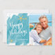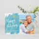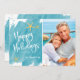 Nautical Boutique Co.'s minimalist beach Happy Holidays card design features modern hand-written script typography, your favourite portrait photo (5x7 ratio), and watercolor starfish accents for a fun tropical holiday theme. The design is set on an aqua teal watercolor swatch background. #MerryChristmas #HolidayCards #TropicalHolidays