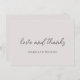 Customisable wedding Thank you card. Featuring Love and Thanks in script in grey font on a beige background. With a customisable message on the reverse.