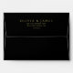 A very elegant and chic minimalist black and gold wedding return address envelop. With solid black colour and gold champagne typography script of the names and return adress.