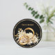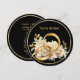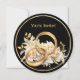 A beautiful minimalist black and gold wedding invitation with a circle element and gold colored text.