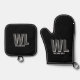 Minimalist Black and Grey Personalised Monogram Oven Mitt & Pot Holder Set
