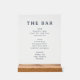 This wedding menu card features a minimalist and structured layout with centered alignment, creating a balanced and formal appearance. The design uses a clean white background with black text for high contrast and readability, emphasizing the categories of "Beer," "Wine," and "Spirits" in a clear hierarchy. The typography is elegant and consistent, using serif fonts that add a touch of sophistication, making it perfect for an upscale event. The overall style is modern and utilitarian, focusing on clarity and simplicity to convey a professional and unembellished mood.