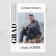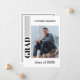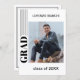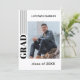 Unique and trendy minimalist style congratulations graduate announcement and celebration party invitation card, framed with a stylish black striped border pattern on a crisp white background. With room to customise or personalise with a photo, the name of the graduate, class graduation year, high school, future college or university name, and celebration party event information. Let the family, friends and neighbours know there is a happy graduate ready to conquer the world, and invite everybody to come celebrate the happy event with you!