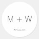 Minimalist Wedding black and white initials elegant modern simple chic Classic Round Stickers.