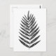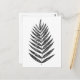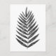 This modern minimalist botanical illustration features a simple palm frond leaf drawing in black and white.
