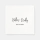 Modern wedding napkin featuring a simple design with your names in an elegant script typography and your wedding date in a minimalist sans serif font. All design elements are in black and white. These chic wedding napkins work well with any style of wedding.