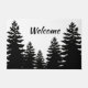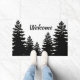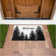 Minimalist black and white pine tree silhouette doormat