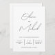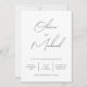 Invite your guests to celebrate in style with this modern wedding invitation featuring oversized script names and a clean black and white layout. The minimalist design highlights the couple while keeping all essential details - date, time, and location - easy to read. The back side includes a custom QR code that guests can scan for directions, RSVP, or your wedding website. This invitation is perfect for elegant weddings, contemporary receptions, and timeless dinner and dancing celebrations. A chic choice for couples who love simplicity with a touch of modern sophistication. Available as a printed card or convenient digital download.