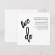 These simple, modern wedding invitations feature trendy black script typography that says "we do", on a white background for a very stylish look.