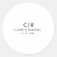 This minimalist black and white wedding classic round sticker is perfect for a wedding reception. The design features a beautiful black font in a white white background to embellish your event.