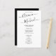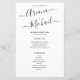 The design features modern script fonts for the names of the bride and groom, adding a touch of elegance and sophistication to your wedding program. The black and white colour scheme creates a chic and minimalist look, perfect for a modern wedding.