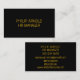 A sleek and sophisticated business card featuring modern typography in gold on a deep navy blue background. The clean, minimalist design allows for easy personalisation of your name, title, and contact details, creating a unique and professional impression to elevate your business presence.