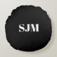 Minimalist elegant simple modern black and white Custom monogram initials name Round Pillow