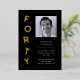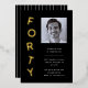 A 40th birthday party invitation with modern, minimalist, black-and-gold design. This simple design features the typography "forty" stacked on top of each other in a playful way. Customisable in any colour. Add a photo of the birthday man.
