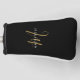 Minimalist Black and Gold Script Monogram Golf Head Cover.