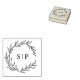 Minimalist Black Leaf Modern Wedding Initials Rubber Stamp