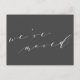 Minimalist Modern Black and White Elegant Script We Moved New Home Moving Postcard