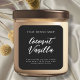 This custom editable minimalist black packaging candle label template features simple design which will surely catch the eye of potential customers and accent your brand. Beautiful minimal script font is accented on an elegant black background.
