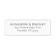 This return address label features a clean, minimalist design with centered text on a white background. The black serif font provides an elegant and formal look, perfect for personalizing your mailings. With ample negative space around the text, this label ensures clarity and readability, making it ideal for formal correspondence or special events. Its simple yet sophisticated style conveys professionalism while maintaining a timeless appeal.