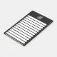 This minimalist notepad features white to-do list checkboxes, with a black background. Above is a space for you to insert your business logo. You can edit the shape of the checklist as needed. Great gift for home business owners. ••• For more black and white business stationery, visit my store www.zazzle.com/the_business_babe ••• For custom orders, message me on Zazzle