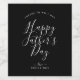 Minimalist "Happy Father's Day - Cheers to No.1 Dad" wine bottle label in simple black and white white colour, with modern, chic and elegant handwriting typography style. All text is customisable. Personalise with kids' names. Perfect Father's Day gift or party favour.