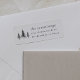 Elevate your holiday correspondence with these minimalist black and white return address labels from the Simple Wish collection by Redwood & Vine Design Co. Featuring simple tree illustrations and modern typography, this understated design is perfect for pairing with Christmas cards, envelopes, and seasonal stationery. A refined choice for families who prefer a clean, elegant look for the holidays.