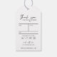 Minimalist black & white clothing hang tag design with modern fonts, simple layout and space for your logo or monogram. This elegant fashion boutique swing tag allows you to edit all colours and add your contact details, and it includes size, price and SKU table and simple washing instructions icons for clothes (edit using the design tool for more washing care icons in the hidden layers). The perfect finishing touch to your couture business packaging design.
