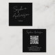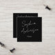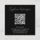 Make a lasting impression with this modern minimalist square business card featuring a black background and elegant handwritten script name. The clean and stylish layout keeps your personal details beautifully highlighted, while the scannable QR code on the back allows clients to instantly access your website, portfolio, social media, booking page, or contact details.