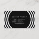 This modern business card features a minimalist geometric design of round lines in white against a black background. It is ideal for various professions like Consultants, Bloggers, Interior Designers, Fashion Stylists, Event Planners etc; anyone who wants a way to let the people they meet in real life know how to find them and their work/portfolio online and on social media.