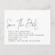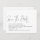 Minimalist Black White Script Save The Date. A convenient postcard to let your guests know your wedding date with this minimalist black and white design with informal script for the header and lots of white space for a contemporary feel.
