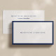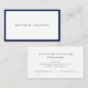 Minimalist business card with blue trim on the front in an upscale typography layout. Professional and easy to customize.