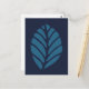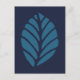 A minimalist modern art silhouette drawing of a leaf in fall in a teal blue colour with a dark navy blue background.