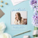 This modern minimalist graduation announcement acrylic invitation, features a trendy calligraphy script font and simple blue lines. Easily edit this online template. THE SAMPLE PHOTO IS NOT INCLUDED. REPLACE WITH YOUR OWN PHOTO BEFORE ORDERING.