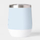 This thermal wine tumbler features a delicate palm tree illustration with the couple's names and wedding date in clean spaced lettering on a soft powder blue background — perfect for beach weddings, destination weddings, or anniversary party with a coastal vibe. A simple, elegant favor that doubles as a keepsake. Fully customizable with your names and date.