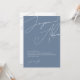 Minimalist Blue Script Typography Wedding Invitations. Elevate your wedding announcement with our modern blue script typography invitation, a timeless choice for your special day. This invitation seamlessly combines classic and elegant design elements with a simplistic white-on-blue aesthetic, creating a striking contrast that sets a formal and sophisticated tone. The simplicity of the blue colour scheme and the elegance of the white typography make this invitation a perfect choice for couples seeking a simple yet impactful statement. Choose this invitation to let your love shine in a classic and modern fusion