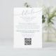 This simple details enclosure card with timeline features simple modern details wedding website, calligraphy rsvp online web address, elegant information black and white, minimalist info elegant and modern, simple classy typography, web address more information, web internet guest response, rsvp online on-site, modern web site sophisticated, guest details and information, With QR code placement.