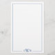 Create your own personalized stationery paper with elegant minimalist monogram three letter initials and simple thin line border in blue color.