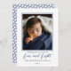 Your single photo brings this minimalist "Love and Light" Hanukkah design to life, creating a keepsake for your recipients that they can cherish for years to come. The back features a simple overlapping square pattern in coordinating blue and white. Composite design by Holiday Hearts Designs.