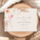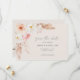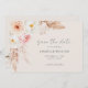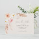 A minimalist boho wedding save the date cards featuring watercolor white peonies, soft peach roses and pampas grass floral bouquet on an ivory cream colour background.